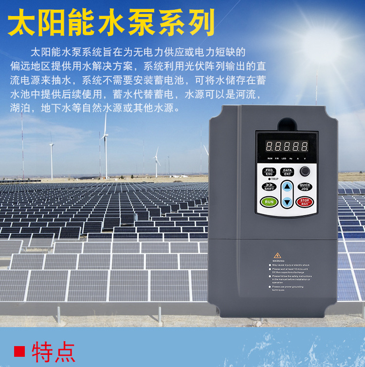 SK650系列變頻器是三科推出的針對光伏發(fā)電,驅(qū)動三相交流水泵的變頻器,它采用大功率點追蹤及久經(jīng)考驗的電機(jī)驅(qū)動技術(shù)以催化增大太陽能模塊的輸出功率,它將直流電直接逆變成三相交流電,可驅(qū)動各類交流水泵。同時它支持直流和交流輸入,當(dāng)沒有太陽能時,該變頻器手動切換到單項或三相交流電輸入,如市電發(fā)電機(jī)或電池。SK650光伏水泵變頻器提供全方位保護(hù),電機(jī)軟啟動及調(diào)速功能,即開即用,安裝方便。