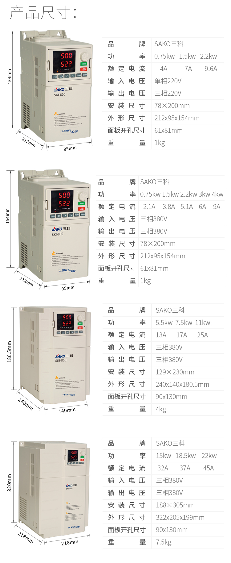 產(chǎn)品型號 SKI800A0D75G-4 SKI800A1D5G-4 SKI800A2D2G-4 SKI800A3D0G-4 SKI800A4D0G-4