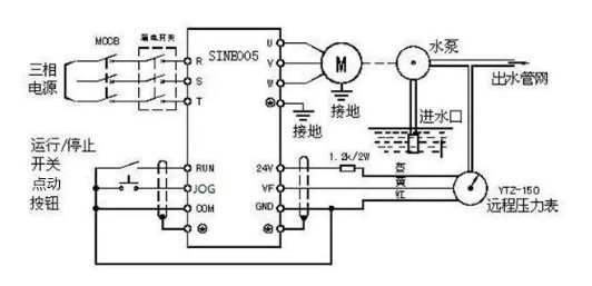 這類狀況應(yīng)用一個自我保護按鍵開關(guān)就可以考慮變頻器的起停控制,多出去的一個開關(guān),能夠用于做常見故障校準,收到RST上,自然是用非維持的開關(guān)更理想化,當變頻器有常見故障的情況下,按一下校準開關(guān),就可以清晰變頻器的常見故障了。由于沒有獨立的電阻器給定,此刻能夠根據(jù)實際操作控制面板來給定頻率。