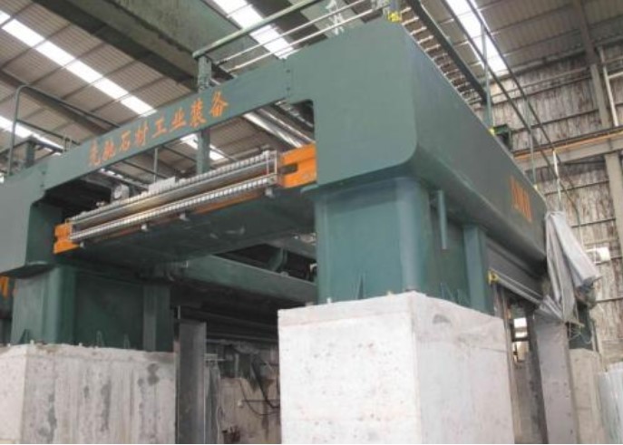 排鋸是將一組(幾十到上百根不等)排鋸裝在往復式鋸框上,由馬達帶動大飛輪上的曲柄連桿機構驅動鋸框做往復運動,為了達到切割石材的目的,通過升降傳動機構連續(xù)向下作進給運動對鋸片施壓,使金剛石鋸片對石材做相對切割運動。鋸架往復速度可達92m/min,主移動導軌設計剛性高、導向精度高、鋸縫小,是目前排鋸主流產(chǎn)品的設計標準。