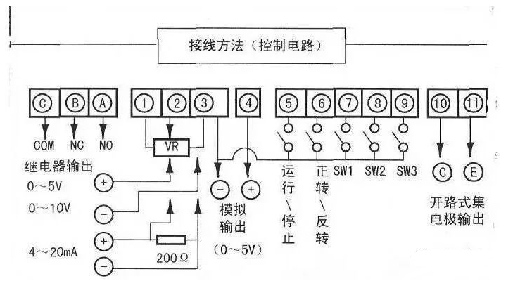 2、由于控制電路的頻率輸入信號是微小電流,所以在接點輸入的場合,為了防止接觸不良,微小信號接點應使用兩個并聯(lián)的節(jié)點或使用雙生接點。