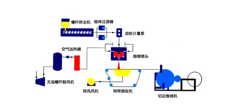 熔噴布生產(chǎn)流程如下圖所示: