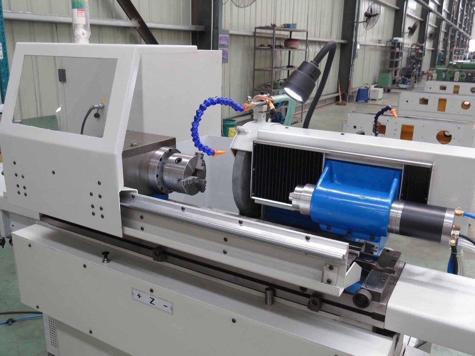 根據(jù)不同的軸桿直徑的大小,主砂輪電動(dòng)機(jī)的轉(zhuǎn)速等于砂輪輸出的轉(zhuǎn)速。磨削力的大小取決于電動(dòng)機(jī)的輸出轉(zhuǎn)矩。在驅(qū)動(dòng)工件旋轉(zhuǎn)的主軸電動(dòng)機(jī)的高速段,相對(duì)于砂輪輸出轉(zhuǎn)速不變,所加工的工件直徑小,磨削進(jìn)給少,加工大直徑,長軸類工件時(shí),工件旋轉(zhuǎn)的電動(dòng)機(jī)在低速段,砂輪進(jìn)給量大,砂輪磨削力也在變大,電動(dòng)機(jī)很難再恒轉(zhuǎn)矩/恒速度下運(yùn)行,速度的變化就產(chǎn)生了如振刀紋/燒糊紋/加工精度等的變化。變頻調(diào)速電動(dòng)機(jī)的無級(jí)調(diào)速,恒轉(zhuǎn)矩輸出恰能彌補(bǔ)上述缺陷。