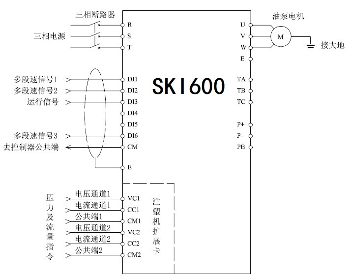 近年來,我國塑料工業(yè)發(fā)展越來越快,注塑行業(yè)也迎來了快速發(fā)展的機(jī)遇。 但與此同時(shí),行業(yè)競(jìng)爭(zhēng)日趨激烈。 除了產(chǎn)品質(zhì)量和品牌,制造商也越來越重視對(duì)生產(chǎn)成本的控制。 從注塑機(jī)的工藝流程我們知道,在注塑產(chǎn)品的成本中,電能消耗成本占了很大的比重。 因此,能否有效降低功率損耗,引起了各注塑機(jī)制造商和用戶的關(guān)注。 隨著變頻調(diào)速技術(shù)的普及,變頻調(diào)速逐漸廣泛應(yīng)用于傳動(dòng)控制和節(jié)能領(lǐng)域,尤其是在泵類負(fù)載場(chǎng)合,采用變頻控制節(jié)能效果顯著。 本文以三科變頻器SKI600系列產(chǎn)品為例,介紹一種變頻控制在注塑機(jī)行業(yè)的應(yīng)用方案。