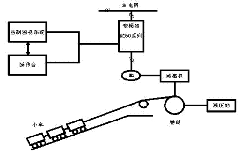 礦井提升機(jī)是煤礦,有色金屬礦生產(chǎn)過程中的重要設(shè)備。提升機(jī)的安全、可靠運(yùn)行,直接關(guān)系到企業(yè)的生產(chǎn)狀況和經(jīng)濟(jì)效益。山西某煤礦井下采煤,采好的煤通過斜井用提升機(jī)將煤車拖到地面上來。這種拖動(dòng)系統(tǒng)要求電機(jī)頻繁的正、反轉(zhuǎn)起動(dòng),減速制動(dòng),而且電機(jī)的轉(zhuǎn)速一定規(guī)律變化。斜井提升機(jī)的機(jī)械結(jié)構(gòu)示意如下圖所示。斜井提升機(jī)的動(dòng)力由繞線式電機(jī)提供,采用轉(zhuǎn)子串電阻調(diào)速。