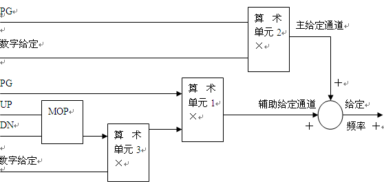 PG·MOP須先在算術(shù)單元中作乘法運(yùn)算后再作為輔助給定。由于MOP的范圍為不可調(diào)的0~100%,需在算術(shù)單元中用乘法運(yùn)算將其限制在0~10%之內(nèi)。具體框圖如圖5: