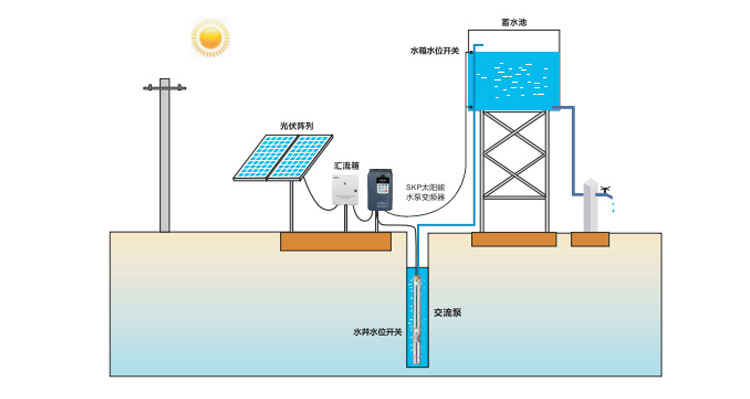 在當前社會環(huán)境中,使用太陽能水泵系統(tǒng)的主要目標,是旨在為沒有電力供應或電力短缺的偏遠地區(qū)提優(yōu)質(zhì)節(jié)能的供水解決方案。該系統(tǒng)利用光伏陣列輸出的直流電來驅(qū)動水泵抽水。該系統(tǒng)無需安裝電池,但可以將水儲存在儲水罐中以備后續(xù)使用。儲水的水源可以是河流、湖泊、地下水等天然水源,也可以是其他水源。