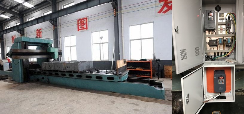 針對龍門刨床主傳動(dòng)系統(tǒng)的結(jié)構(gòu)及控制特點(diǎn),采用PLC和變頻技術(shù)對傳統(tǒng)的龍門刨床控制系統(tǒng)進(jìn)行改造。工作臺(tái)的主運(yùn)動(dòng)及進(jìn)刀機(jī)構(gòu)分別采用變頻器進(jìn)行控制,制動(dòng)系統(tǒng)采用能量回饋裝置,全部工藝過程及相關(guān)信號(hào)由PLC進(jìn)行控制,與原系統(tǒng)相比較,改造后使用我司ES100系列變頻器調(diào)速系統(tǒng)主傳動(dòng)裝置容量節(jié)省,傳動(dòng)效率提高了一倍,調(diào)速范圍增大到1:35,靜差度3%,同時(shí)還大大簡化了拖動(dòng)控制系統(tǒng),減小了維護(hù)工作量,經(jīng)濟(jì)性和可靠性都有了很大的提高。