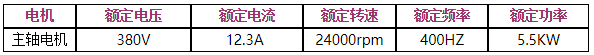 (4)調速范圍在0~24000r/min,換算變頻器的運行頻率為0~400Hz(二級高速電機);