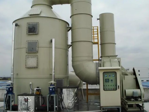 在工業(yè)廢氣處理中,酸霧廢氣通過風管引入凈化塔,經(jīng)過填料層后,與氫氧化鈉吸收液進行氣液兩相全接觸吸收中和反應(yīng)。凈化后的酸霧廢氣經(jīng)除霧器脫水除霧后,由風機排入大氣。吸收液由塔底水泵加壓,塔頂向下噴淋,最后返回塔底循環(huán)使用。