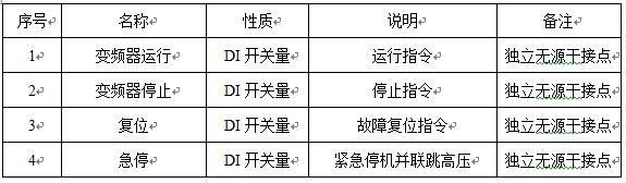2)高壓跳閘:常閉接點(diǎn),切斷有效,該信號與供電高壓開關(guān)柜的門路并聯(lián),變頻器發(fā)生重大故障或急停信號有效時(shí),切斷用戶的高壓電