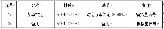 為了更方便的操作,變頻器的起停在機(jī)器旁邊的箱子里進(jìn)行控制,在DCS上進(jìn)行監(jiān)視。頻率調(diào)節(jié)由前級傳感器返回的電流模擬信號(4-20mA)進(jìn)行PID控制。具體控制信號如下: