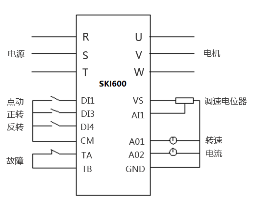 鉆樁機(jī)最核心的部件就是動(dòng)力頭,一般動(dòng)力頭是由兩臺(tái)電機(jī)共同拖動(dòng)一個(gè)變速箱再鏈接鉆桿來(lái)完成鉆樁任務(wù)。由于每個(gè)工地的地下巖層情況不同,所以鉆樁機(jī)的動(dòng)力頭需要足夠大的輸出扭矩,以保證適應(yīng)各種各樣的巖層和土質(zhì)。這就要求驅(qū)動(dòng)動(dòng)力頭電機(jī)的SKI600低頻輸出力矩足夠大,鉆樁過(guò)程平穩(wěn)可靠,才能保證鉆樁機(jī)不夾鉆,混凝土不堵管。